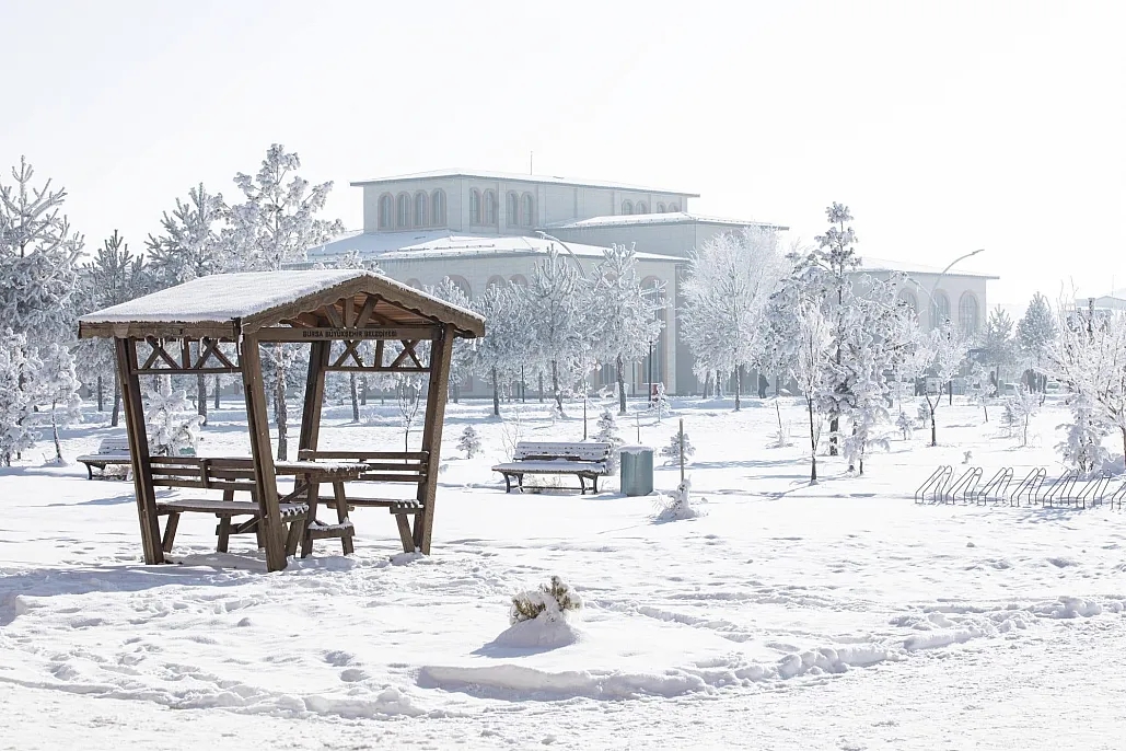Sabah saatlerinde etkili olan pus ve kırağı, üniversite yerleşkesine ayrı bir atmosfer kattı. Ağaç dallarını saran kırağı, karla birleşerek kampüsü sessiz ve huzurlu bir görünüme bürüdü.