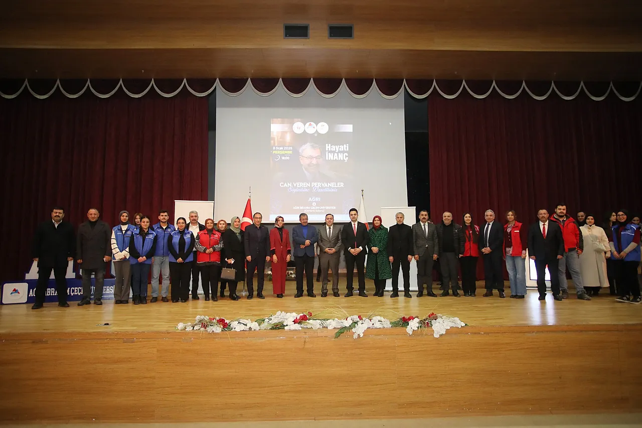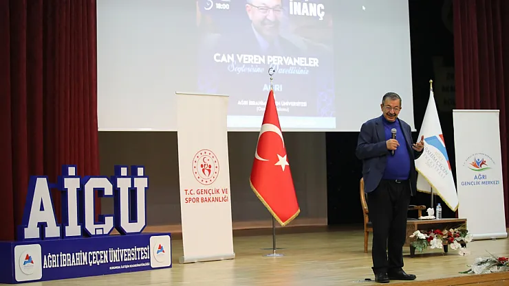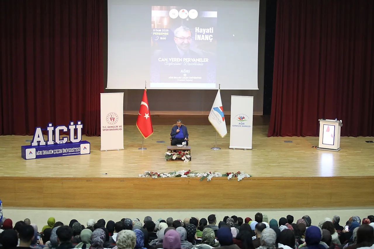 Ağrı İbrahim Çeçen Üniversitesi (AİÇÜ) ile Ağrı Gençlik ve Spor İl Müdürlüğü iş birliğinde düzenlenen “Can Veren Pervaneler” söyleşisi, yoğun katılımla gerçekleştirildi. AİÇÜ Recep Tayyip Erdoğan Kültür ve Kongre Merkezi Osmanlı Konferans Salonu’nda düzenlenen programa, şair ve yazar Hayati İnanç konuk oldu.