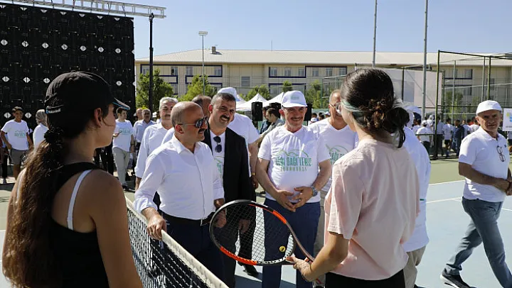 Sporcularla bir süre sohbet eden Vali Dr. Osman Varol'un tenis maçına start vermesinin ardından, tenis turnuvası başladı.