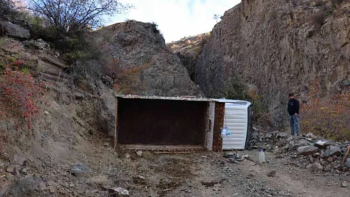 Mahalle muhtarı Halil İbrahim Yücel, hayvanlarını getirirken rampada araba çıkmayınca geri kaçan pikap devrildi, hayvanlarda sıyrıklar oluşurken sürücü Halil İbrahim Yücel kazadan yara almadan kurtardı.