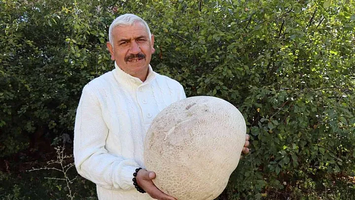 Erzurum'un Oltu ilçesine bağlı Kemerkaya köyünde 8,885 kilogramlık mantar bulan Beycan Onat, ilk gördüğünde mantarı kestane kabağı sandığını söyledi.