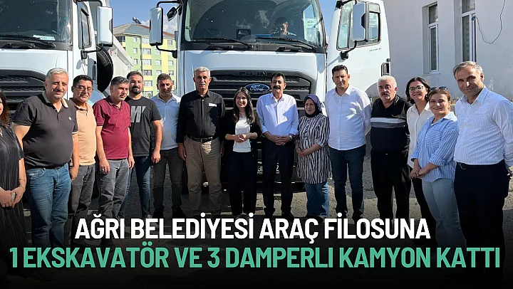 Ağrı Belediyesi araç filosunu güçlendirdi. 1 lastikli ekskavatör ve 3 damperli kamyon hizmete alınarak yol, altyapı ve temizlik çalışmaları hızlandı.