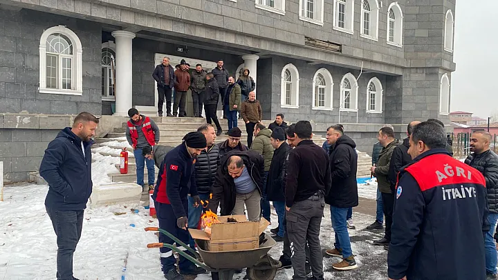 Ağrı Belediyesi İtfaiye Müdürlüğü, İl Özel İdaresi personeline yangın eğitimi vererek uygulamalı tatbikat gerçekleştirdi.