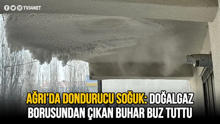 Ağrı'da Dondurucu Soğuklar: Doğalgaz Borusundan Çıkan Buhar Buz Tuttu