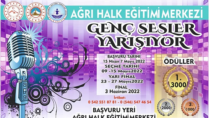 Ağrı Milli Eğitim Müdürlüğü ve Ağrı Halk Eğitimi Merkezi koordinesinde gerçekleşecek 'Ses Yarışması' tüm hızıyla başvuruları almaya devam ediyor.