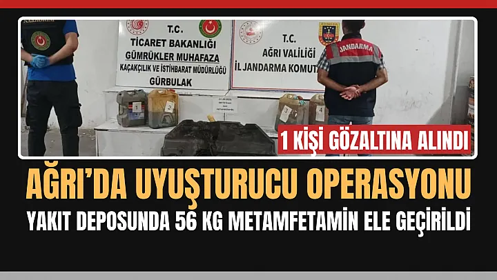 Ağrı'da jandarma ve gümrük ekiplerinin ortak operasyonunda, İran'dan gelen bir tırın yakıt deposunda 56 kilo sıvı metamfetamin ele geçirildi.