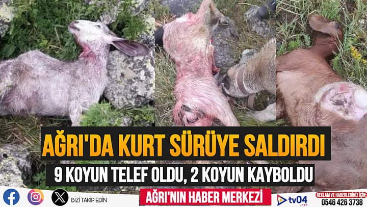 Ağrı'nın Taşlıçay ilçesine bağlı İkiyamaç köyünde kurt saldırısına uğrayan koyun sürüsünden 9 koyun telef oldu, 2 koyun ise kayboldu.