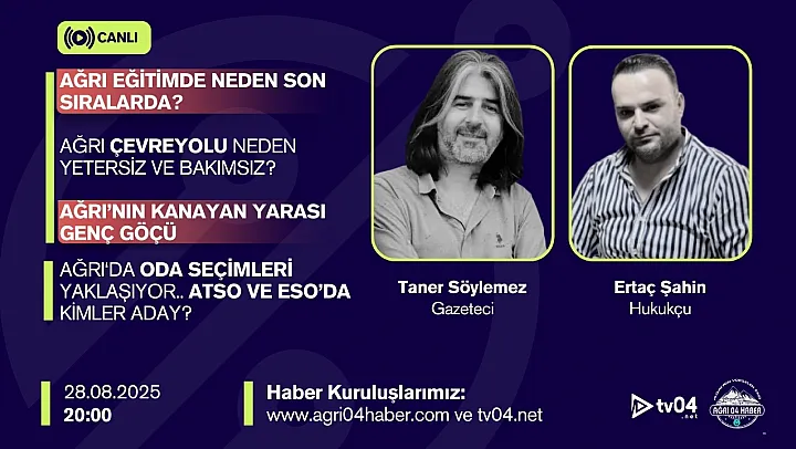 Ağrı'da 'Şehrin Gündemi' bu akşam 20.00'de TV04 ve Ağrı 04 Haber'de. Eğitim, çevreyolu, genç göçü ve oda seçimleri masaya yatırılacak.