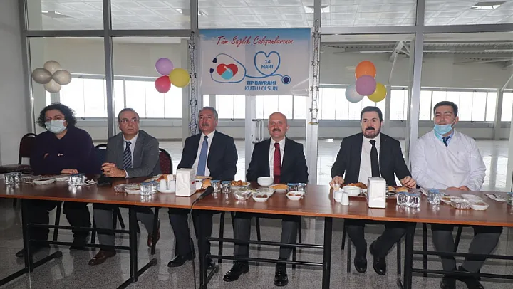 Sağlık hizmetlerinin başarılı bir şekilde yürütülmesinde en önemli vazifeyi sağlık çalışanlarının üstlendiğini belirten Prof. Dr. Abdulhalik Karabulut, 'Bir canı kurtarmayı, bütün insanlığı kurtarmakla eşdeğer sayan bir medeniyetin varisleri olarak; sağlık çalışanlarımızın bu ülke insanının sağlığı için gece gündüz demeden her şartta fedakrca çalışmalarının paha biçilemez kıymetini çok iyi bilmekteyiz. Tıp Fakültemizin katkılarıyla hastanemizin çok daha iyi hizmetler vereceğine inanıyorum. Bu duygularla başta Üniversitemiz Tıp Fakültesi doktorları ile diğer sağlık çalışanlarımız olmak üzere, insanlığa daha nitelikli bir yaşam sunmayı amaç edinen, bu kutsal, saygın ve onurlu mesleği icra etmek için büyük özveriyle çalışan siz sevgili sağlık çalışanlarımızın insan yaşamına saygıyı ifade eden 14 Mart Tıp Bayramı'nı gönülden kutluyorum' diye konuştu.