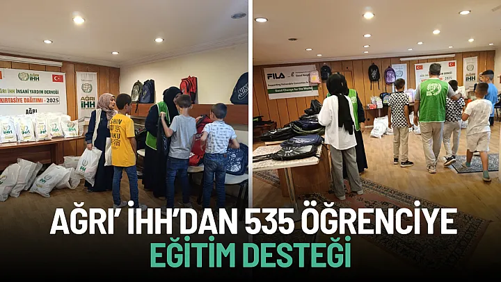 Ağrı İHH İnsani Yardım Derneği, 2025-2026 eğitim öğretim yılının başlamasıyla birlikte Ağrı'da ihtiyaç sahibi 535 öğrenciye kırtasiye ve okul desteği sağladı.