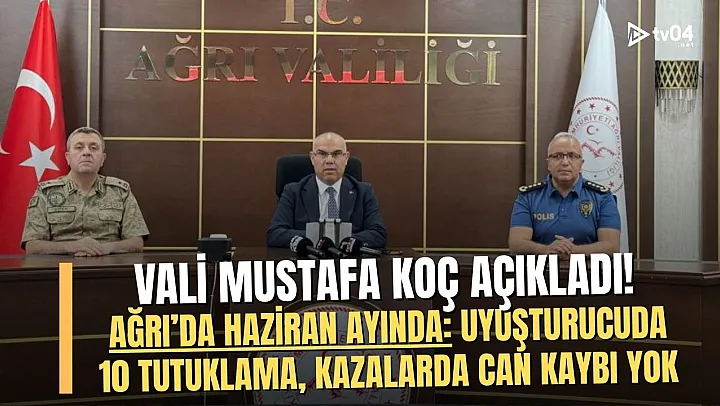 Ağrı Valisi Mustafa Koç, 2025 yılı Haziran ayına ait güvenlik verilerini kamuoyuyla paylaştı. Teröre karşı 45 operasyon düzenlendi, uyuşturucuyla mücadelede 10 tutuklama gerçekleşti. Asayiş olaylarının yüzde 97'si aydınlatılırken, Haziran ayında trafik kazalarında can kaybı yaşanmadı.