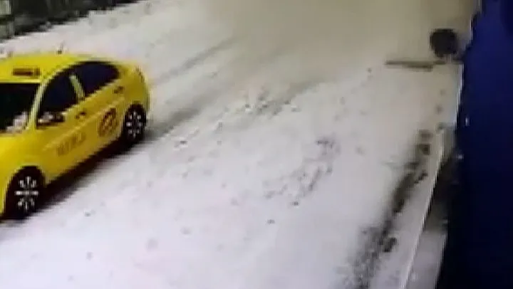 Bingöl'de bir vatandaş, binanın çatısından üzerine kar kütlesinin düşmesi ile yaralandı. Yaşananlar ise güvenlik kamerasına saniye saniye yansıdı.