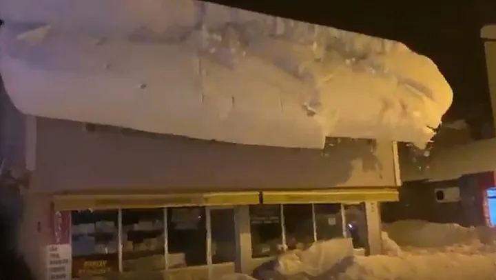 Tunceli'nin Ovacık ilçe merkezinde bir binanın çatısında biriken kar, havaların ısınmasıyla birlikte bir anda çığ gibi kayıp düştü. O anlarda bina önünde kimsenin bulunmaması faciayı önledi. Tonlarca karın bir anda yere düşmesi cep telefonu kamerasıyla anbean kayıt altına alındı.