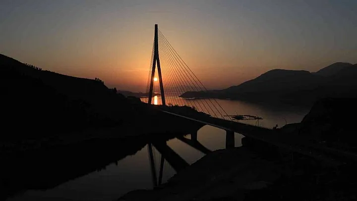 16 şehri birbirine bağlayan, Eyfel Kulesi'nde kullanılan çelik miktarına eşit olan 7 bin ton çelik kullanılan ve aynı zamanda dünyada orta açıklığı ile 4. sırada yer alan Kömürhan Köprüsü, günbatımı ile eşsiz görüntüler oluşturdu.