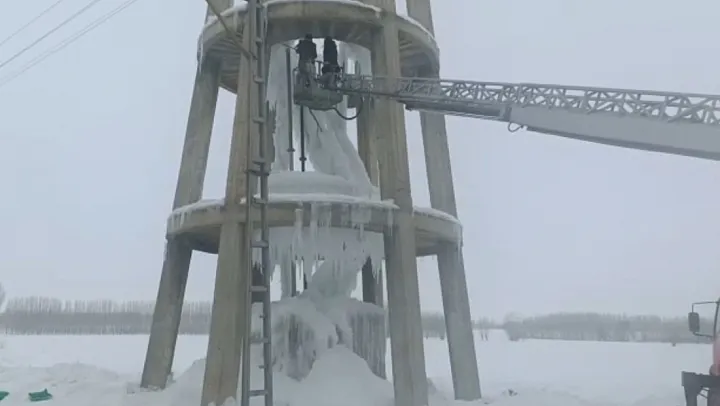 Van'ın Erciş ilçesinde hava sıcaklığının sıfırın altında 16 dereceye kadar düşmesi sebebiyle mahallenin su ihtiyacının sağlandığı su deposu dondu.