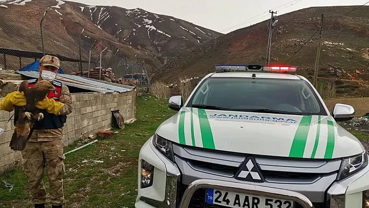 Erzincan'ın Tercan ilçesinde Tercan İlçe Jandarma Komutanlığı Yollarüstü Jandarma Karakol Komutanlığınca icra edilen devriye faaliyetinde yaralı halde Kaya Kartalı bulundu.