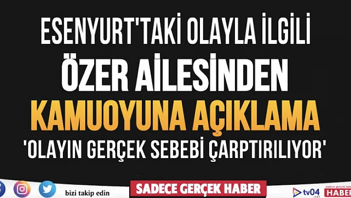 İstanbul Esenyurt ilçesinde yaşanan talihsiz olayla ilgili Özer Ailesi'nden basına ve kamuoyuna bilgilendirme amaçlı bir açıklama geldi.