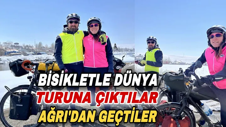 Genç çift dünya turuna çıktı, bisikletle Ağrı'dan geçtiler