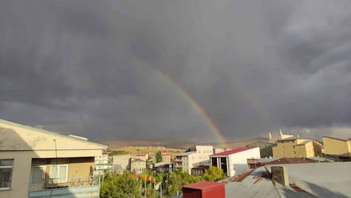 Ardahan'da yağmur sonrası gökyüzünde beliren gökkuşağı görenleri mest etti.