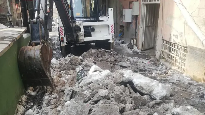 Hakkari Belediyesi karla mücadele ekibi ara sokaklarda tehlike arz eden buz kütleleri ile mücadele çalışması başlattı.