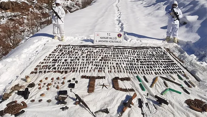 Hakkari'nin Çukurca ilçesi Kazan Vadisi kırsal alanında Jandarma Komando, JÖH ve Güvenlik Korucularının katılımı ile icra edilen operasyonda çok sayıda silah ve mühimmat ele geçirildi.