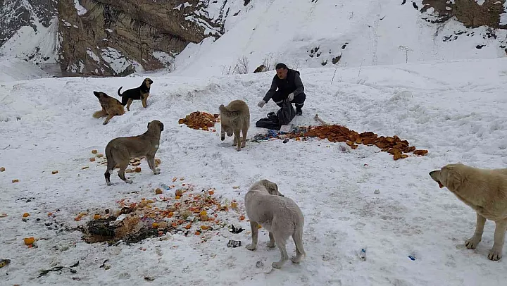 Hakkari'de, sokak hayvanları için doğaya ve barınaklara yiyecek bırakıldı.