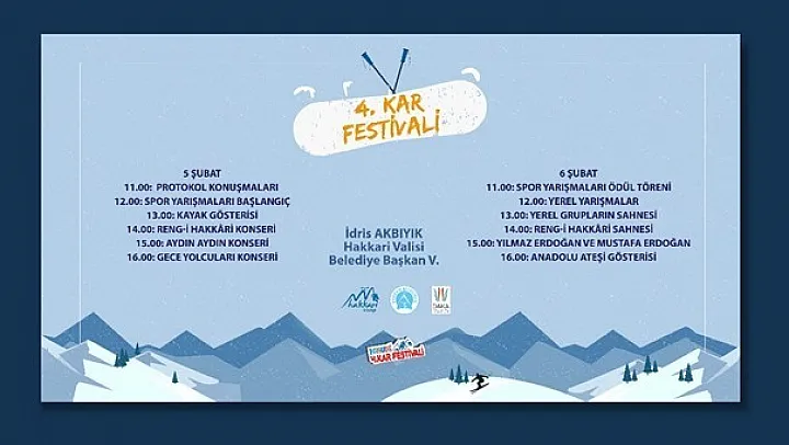 Hakkri Valiliği ve Hakkri Belediyesi Koordinasyonunda 4. Kar Festivali'nin yapılacağı belirtildi.