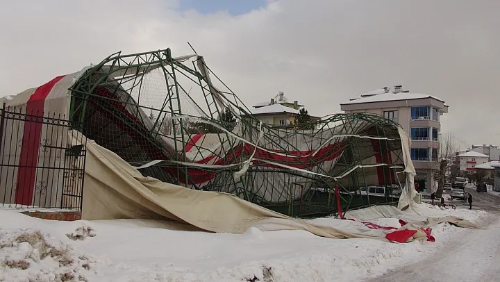 Halı saha çalışanı ve ortağı Şükrü Karaoğlan olayı anlatırken, 'Halı sahanın anahtarını açıyordum, tam o anda bir gürültü koptu. Kafamı kaldırdım demirler ve çadır inmeye başladı. Sırayla hepsi çöktü. Çok şükür içeriye kimseyi almamıştık" dedi.