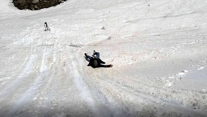 Haziran ayında kışı yaşayıp poşetle kızak keyfini çıkardılar