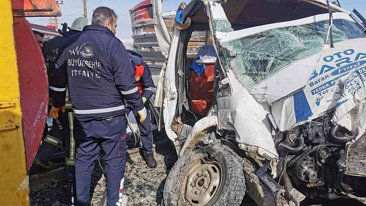 Van'ın İpekyolu ilçesinde ray temizleme aracıyla kamyonetin çarpışması sonucu 4 kişi yaralandı.