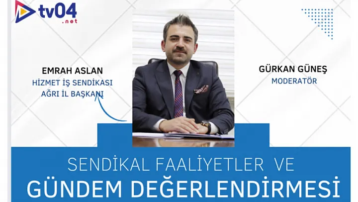 Hizmet-İş Ağrı İl Başkanı Emrah Aslan 02 Kasım Çarşamba akşamı 20:00'de TV04 ekranlarında Gazeteci Gürkan Güneş'in canlı yayın konuğu olacak.