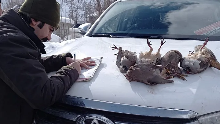 Van'ın Çatak ilçesinde kaçak keklik avlayan 3 kişiye tutanak düzenlenirken, 10 ölü kınalı kekliğe el konuldu.