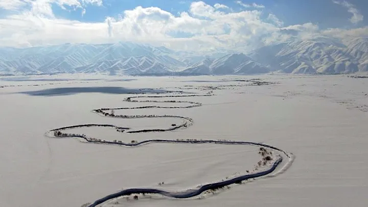 İlçenin dümdüz ovasının içinde kıvrılarak uzayan menderesler, etrafını saran karlı dağlarla görsel şölen sunuyor. Yaz aylarında etrafını saran sarı çiçeklerle uzayıp giden menderesler, kış aylarında ise kar altındaki manzarasıyla kartpostallık görüntü sunuyor. Mendereslerin kar altında kıvrılarak giden halinin karlı dağlarla birleşmesi havadan görüntülenmesi görenleri mest etti.