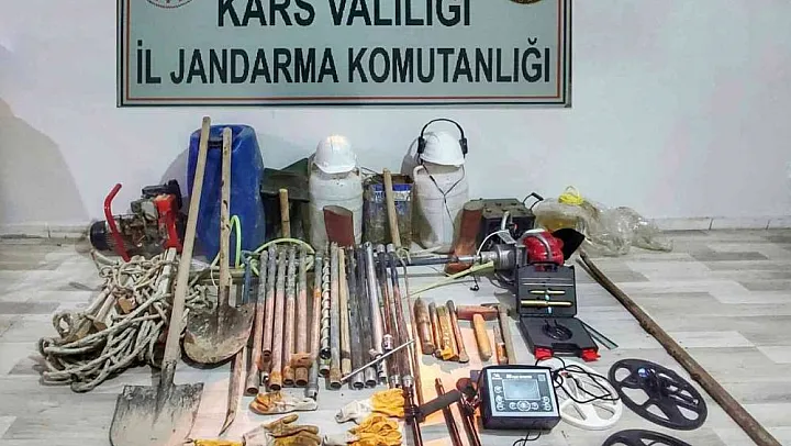 Kars'ın Akyaka ilçesinde define arandığı bilgisini alan Kars İl Jandarma Komutanlığı ekipleri, harekete geçti. Jandarma ekiplerince yapılan titiz planlama ve takip sonucunda Akyaka ilçesi mülki sınırları içerisinde izinsiz kazı yapan şüpheli 6 kişi, suç aletleri ile birlikte suçüstü yakalanarak gözaltına alındı.