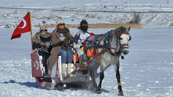 Kars'a yurt içinden ve yurt dışından gelen vatandaşların ilk uğrak yeri Çıldır Gölü oluyor. Gökyüzünün mavisiyle birleşen beyaz zeminde atlı kızakla gezmek isteyen vatandaşlar, donmuş göle akın ediyor. Kars'ın Arpaçay ilçesi Kütük Ev bölgesine gelen vatandaşlar, hava sıcaklığının sıfırın altında 10 dereceye düştüğü bölgede atlı kızaklarla soğuğa aldırış etmeden gezmenin keyfini çıkarıyor.