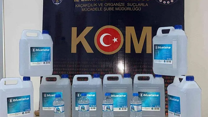 Kars'ta, sahte içki yapımında kullanılan etil alkol ve sahte rakı ele geçirildi.