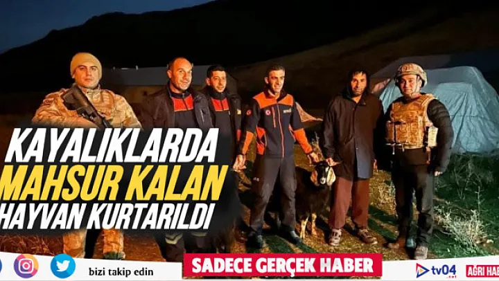 Ağrı'nın Patnos ilçesinde kayalıklarda mahsur kalan 3 küçükbaş hayvan, AFAD ekiplerinin operasyonuyla kurtarıldı. Patnos'ta Çakırbey köyünde otlayan 3 küçükbaş hayvan, kayalıklara çıkarak mahsur kaldı. Hayvanların sahibi, durumu AFAD ekiplerine bildirdi. Olay yerine gelen AFAD ekipleri, kayalıklara tırmanarak hayvanları kurtarmak için çalışma başlattı.