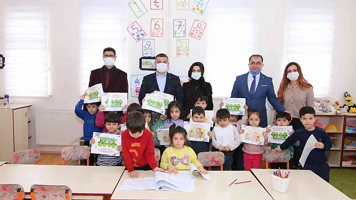 Van'ın Erciş Kaymakamı Nuri Mehmetbeyoğlu, Gülbahçesi Anaokulunu ziyaret ederek, boyama kitabı hediye etti.
