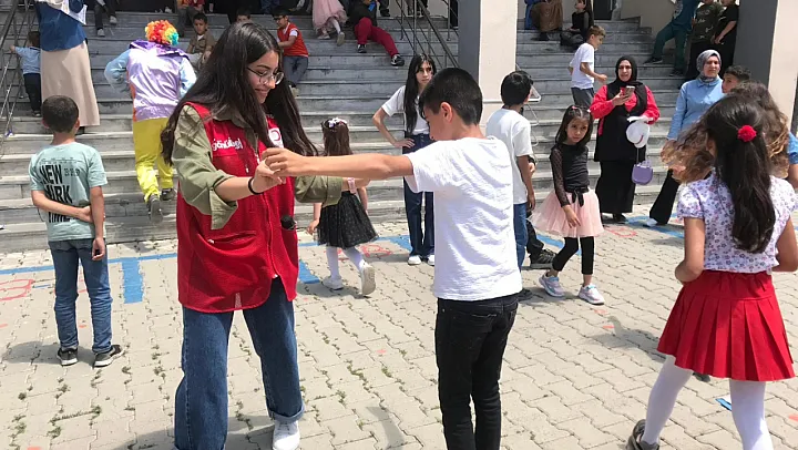 Kızılay'ın sosyal sorumluluk çalışmaları kapsamında gerçekleştirilen etkinlikte çocukların mutluluğu gözlerinden okunurken, Kızılay gönüllüleri de miniklerle yakından ilgilendi.