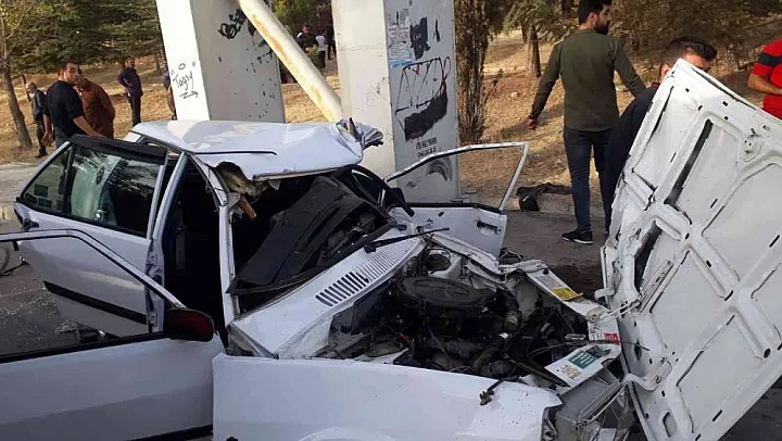 Kontrolden çıkan otomobil üst geçit direğine çarptı: 2 yaralı