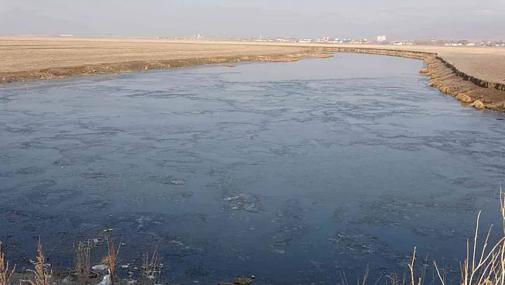 Ardahan'da etkili olan soğukların ardından Kura Nehri'nin yüzeyi, buz tuttu.