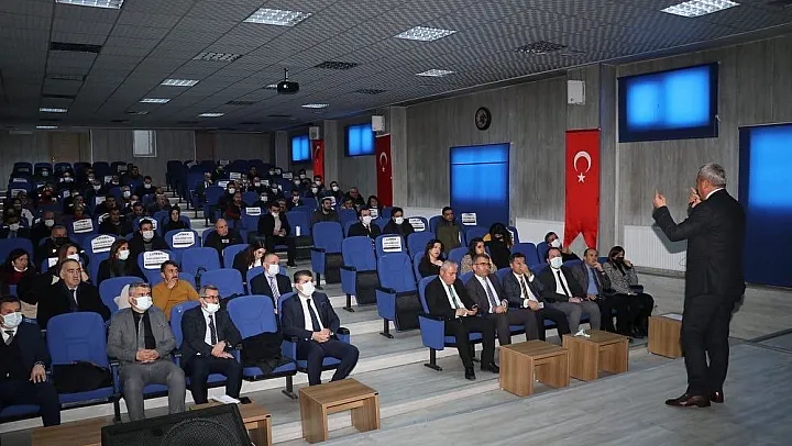 Halk Eğitimi Merkezi Müdürlüğü konferans salonunda yapılan toplantıya İl Milli Eğitim Müdürü Bilal Gür, milli eğitim müdür yardımcıları, şube müdürleri ve eğitim kurumu müdürleri katıldı. Burada konuşan Müdür Gür, 2021-2022 eğitim öğretim yılının ikinci döneminin öğrenciler, öğretmenler ve yöneticiler için hayırlı ve başarılı olması temennisinde bulundu. Gür, "Valimizin riyasetinde, sizlerin de gayretlerinizle eğitimde her geçen gün daha iyiye gidiyoruz. Öncelikle, ilimizin genelinde başlattığımız eğitim seferberliğinde, 'birinci meselemiz eğitimdir' deyip her türlü imkanı bizlere ve çocuklarımıza sunan, her zaman eğitim camiamızın yanlarında olup desteklerini esirgemeyen valimize şükranlarımı arz ediyorum. Okullar; öğrencilerimizin psikolojik, sosyal, duygusal ve kişisel gelişimleri için hayati yerlerdir. İkinci yarıyılda da aynı kararlılıkla yüz yüze eğitime devam edeceğiz. 2023 Eğitim Vizyonu ışığında, bakanlığımızın çalışmalarına ilaveten yerelde başlattığımız 'Her Ev Bir Okul' gibi birçok projeyle birlikte ilimizde eğitim adına çok iyi örneklerle karşılaşıyoruz. İyi örneklerin çoğalması için siz eğitim liderlerine çok önemli görevler düşüyor. Eğitim liderliğinde fedakrlık, özveri ve gönüllülük esastır. Yönetici olarak okulunuzda iletişim kanallarını açık tutmalı ve eğitim paydaşları ile diyalog halinde olmalısınız. Emine Erdoğan Hanımefendinin öncülüğünde bakanlığımızca başlatılan 'Kütüphanesiz Okul Kalmasın' ve valimizin başlattığı 'Bir Kitap Bir İnsan' projelerindeki okuma halkaları ile hedeflenen kitap okuma bilincini hep birlikte artırıyoruz. Çok şükür ki ilimizin her köşesinde bir kütüphane var ve şunu rahatlıkla söyleyebiliriz; artık kitap ve kütüphane dostu bir Hakkari var. Bakanlığımızın başlattığı METYAP projesi hamlesi ile meslek liselerimize talep her geçen gün rekor düzeyde artarak bizleri ziyadesiyle memnun ediyor. Bu liselerin iyi tanıtılması konusundaki çalışmalarınız için de siz eğitim yöneticilerine teşekkür ederim. Her eğitim döneminin başında söylediğim gibi başarı için hiçbir mazeret öne sürmeden, zihinsel değişime ve dönüşüme katkı sunan paydaşlara ihtiyacımız var. Okul ve kurum müdürlerimiz, adil bir yönetici olarak her türlü konu ve mevzuata hakim olmalıdır. Bu toplumda bir şeyler değişecekse, bu toplumun önde giden entelektüelleri olarak biz eğitimciler bu dönüşümü başlatacağız. Nitekim bunu da başarıyoruz. Öğretmenlerimize, motivasyonlarını arttırmak için her türlü desteği sağlamaya devam edeceğiz. Eğitim seferberliği için siz değerli meslektaşlarımızla ikinci yarıyılda da kendimizi her gün yenileyerek, ilimizdeki eğitim kalitesini üst seviyelere çıkarmak için birlik ve beraberlik içerisinde daha fazla çalışacağız" dedi.