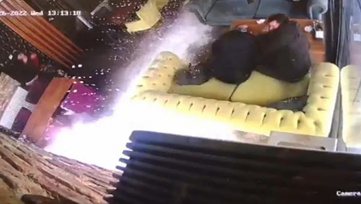 Muş'ta bir apartmanın çatısından düşerek kafeteryada oturan müşterilerin bulunduğu camdan içeriye giren kar kütlesi güvenlik kameralarına takıldı.