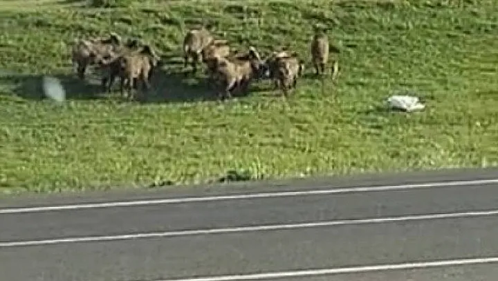 Kars'ın Sarıkamış ilçesinde yolculuk yapan vatandaşlar, yol kenarına kadar gelen domuz sürünü cep telefonuyla görüntülendi. Cep telefonu kamerasına yansıyan görüntülere, araçta bulunan vatandaşların tebessüm ettiren konuşmaları da yansıdı.