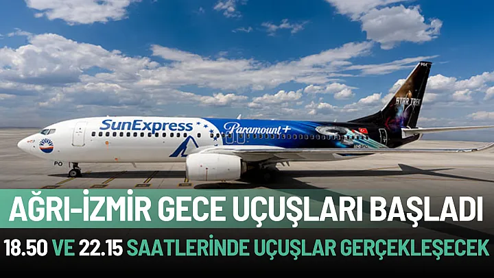 SunExpress, uzun yıllar sonra Ağrı-İzmir uçuşlarına başladı. 18.50 ve 22.15 saatlerindeki seferlerle Ağrı'da ilk kez gece uçuşları başlıyor.