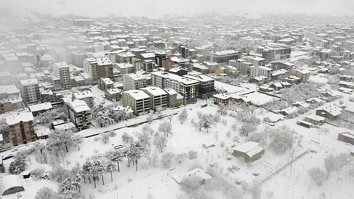 Her yıl aldığı kar miktarıyla Türkiye'nin en çok kar alan ili olan Bitlis'te kar yağışı yeniden etkili olmaya başladı. Dün gece saatlerinde başlayan kar yağışı, gündüz etkisini arttırarak devam etti. Gün boyunca devam eden yağışlar sebebiyle kentteki birçok köy yolu ulaşıma kapandı. Tatvan ilçesinde de etkisini artıran kar yağışı ise drone ile havadan görüntülendi. İlçeyi komple beyaza bürüyen kar yağışı, köy yollarının da kapanmasına neden oldu.