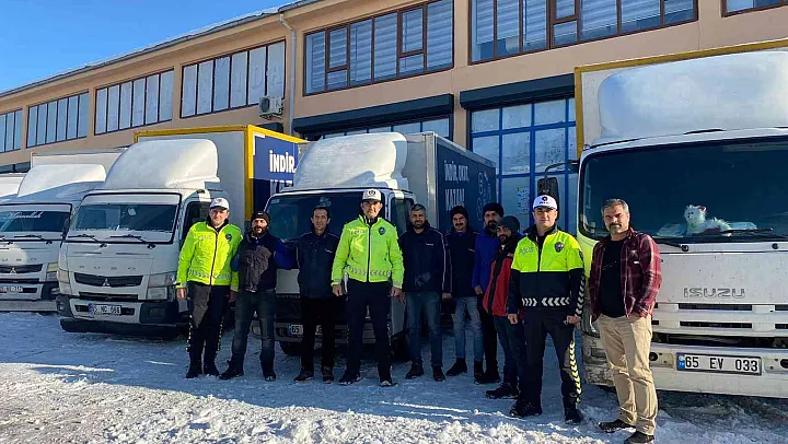 Van Emniyet Müdürlüğü ekipleri, kış şartları nedeniyle ticari araç sürücülerini bilgilendirdi.