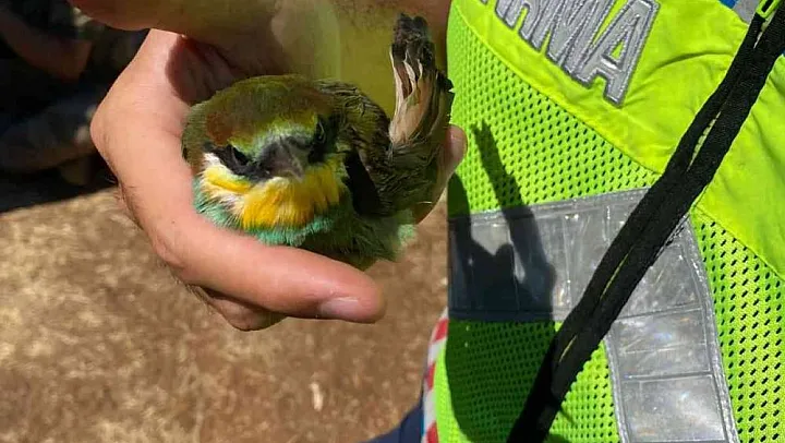 Tunceli'de jandarma ekipleri tarafından bulunan kanadı kırık arı kuşu Doğa Koruma ve Milli Parklar Müdürlüğü ekiplerine teslim edildi.