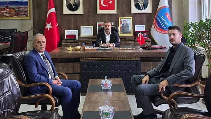 Ağrı'nın Tutak ilçesinde sağlık alanındaki önemli görev değişikliklerinin ardından, Tutak Devlet Hastanesi'ne yeni atanan Başhekim Dr. Mehmet Karabulut ve Hastane Müdürü Murat Divarcı, Tutak Belediye Başkanı Fevzi Sayan'ı makamında ziyaret etti.
