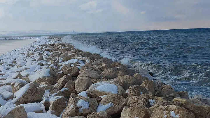 Van'da dün akşam saatlerinde başlayan kar yağışı ve fırtına hayatı olumsuz etkilerken, Van Gölü sahillerinde dev dalgalar oluştu.